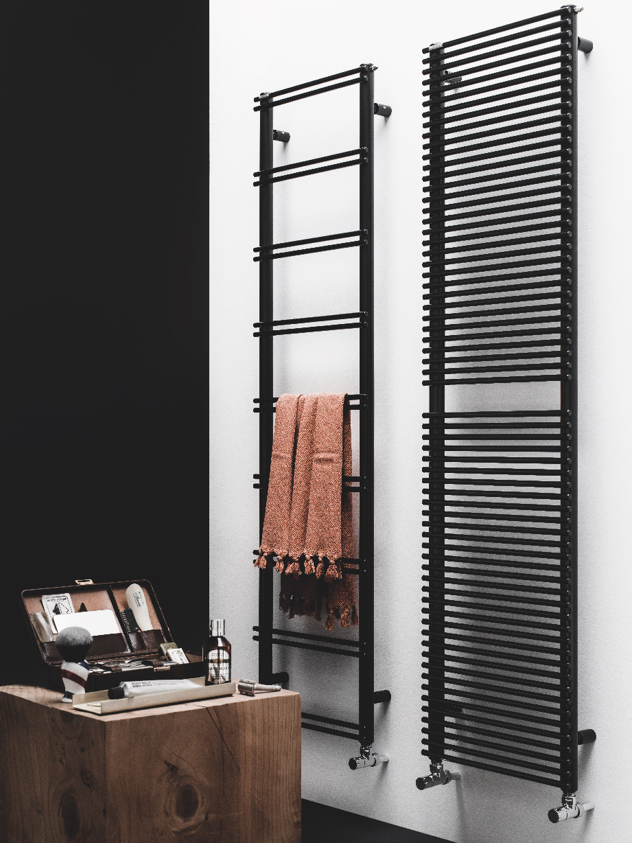 Le radiateur V8 est composé d’éléments horizontaux positionnés avec des intervalles de plus 15cm permettant de faciliter son usage. Le radiateur PIENO de par sa conception diffuse plus de puissance que le modèle V8.